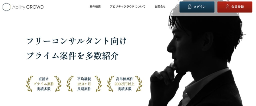 アビリティクラウドは、大手コンサルティングファーム出身者が設立したフリーコンサルタント向け案件紹介サービスです。