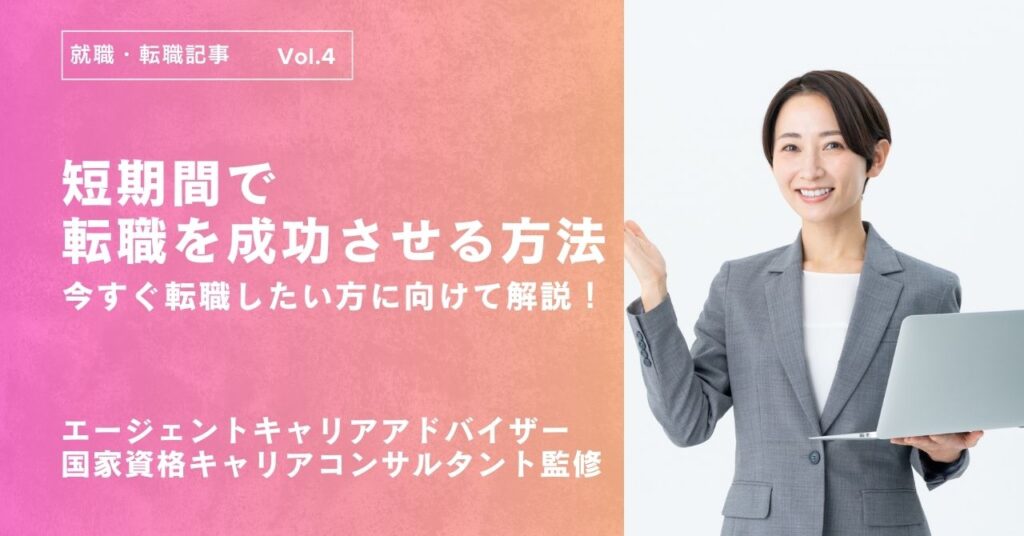 「今すぐ転職したい!」と思ったとき、何から始めればいいのか分からず、焦ってしまうこともある でしょう。しかし、無計画に動くと、「思っていた職場と違った…」「短期間で辞めたくなった…」と後悔するリスクもあります。 短期間で転職を成功させるには... -