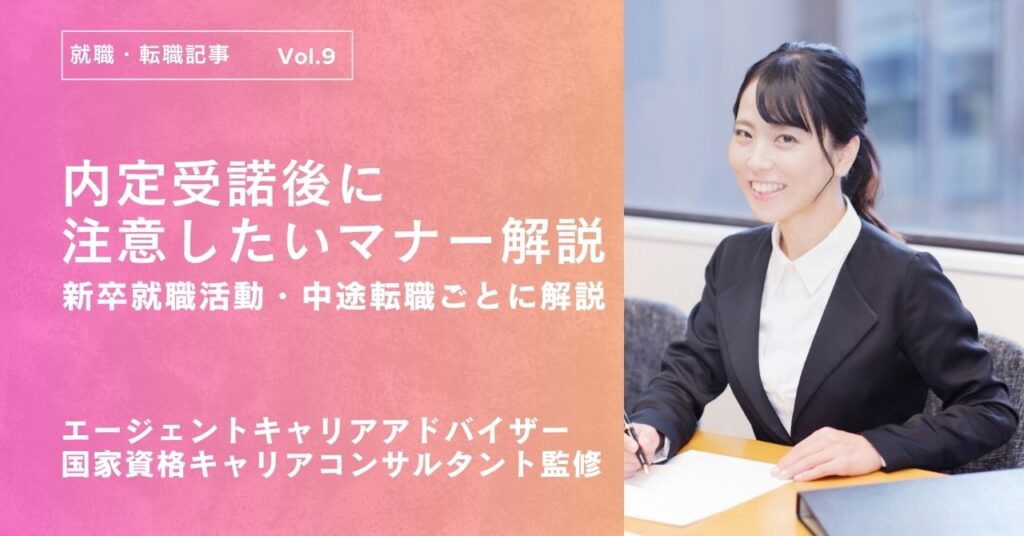 内定後のマナー完全ガイド|内定受諾後の企業とのやり取り・懇親会の振る舞い・退職交渉・入社前の準備を、就活・転職ごとに解説