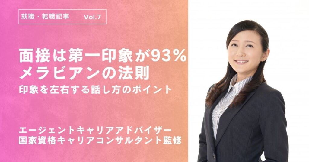 面接は第一印象が93%!メラビアンの法則とは?印象を左右する話し方・態度のポイントを解説。転職・就職活動必見!