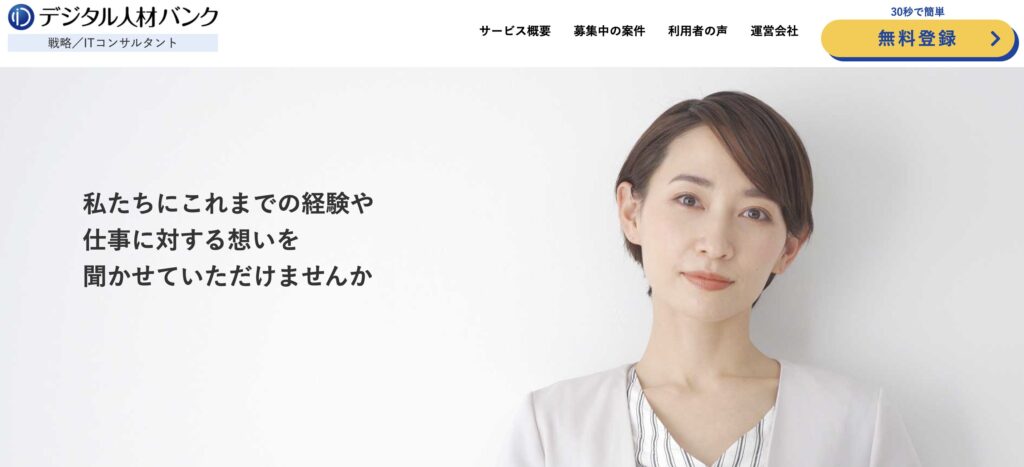 デジタル人材バンクは、フリーランスのITコンサルタントやエンジニア向けに、高単価案件を紹介するマッチングプラットフォームです。