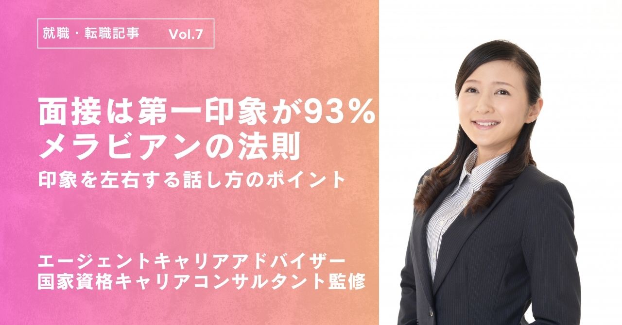 面接では「何を話すか」だけでなく、「どのように話すか」が評価を大きく左右します。これは、心理学者アルバート・メラビアンが提唱した「メラビアンの法則」にもとづく考え方で、言葉だけでなく、表情や声のトーンが印象形成に大きく影響することが分かっています。