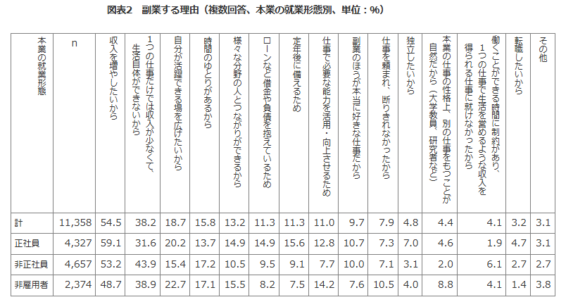副業は収入を増やす手段として語られがちですが、キャリア研究の視点からみると“レジリエンスを高める仕組み”として効果が大きいと言われています。労働政策研究・研修機構の調査でも、副業をしている人の20.2%が「自分が活躍できる場を広げたいから」と回答しています。金銭的な理由に次いで、キャリアの充実が行動誘因となっていることがわかります。