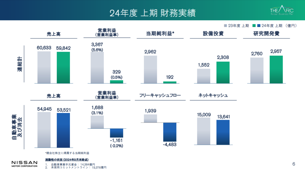 日産自動車株式会社は、2024年度上期(2024年4月1日から9月30日まで)の連結決算を発表しました。