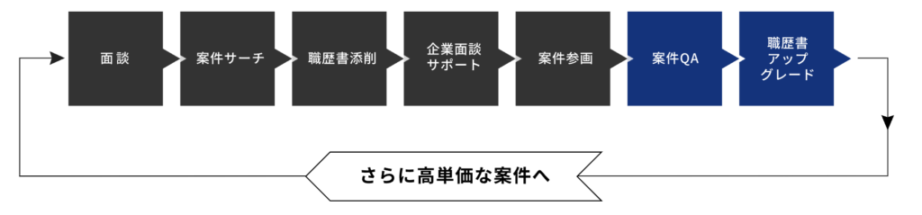 プロジェクト参画で終わりではなく、その後の継続したキャリアアップに向けたサポートを提供しています。