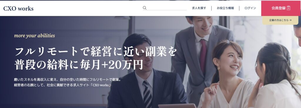 CXO works経営に近い業務を副業としてフルリモートで遂行可能な求人のみを掲載するサイトです。