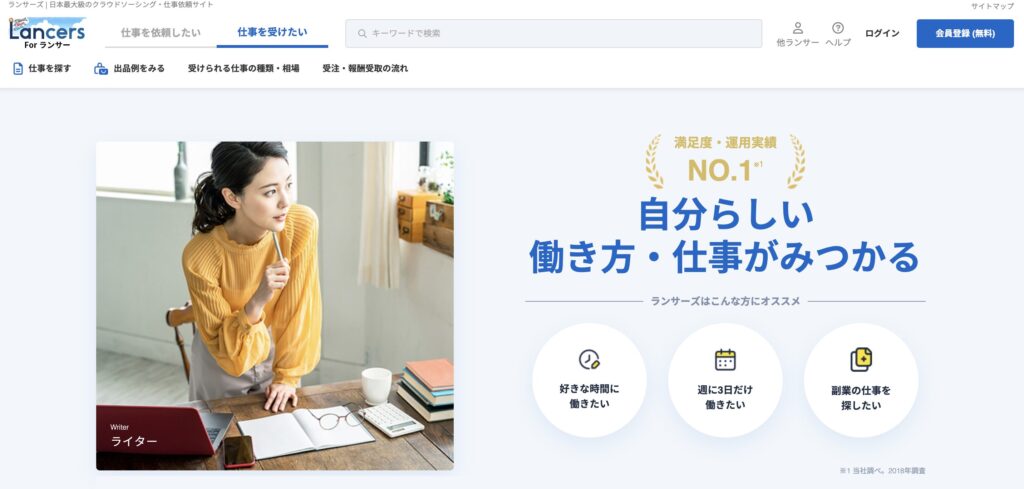 ランサーズはクラウドソーシングの老舗で、初心者からプロまで利用できる仕事が多数掲載されています。